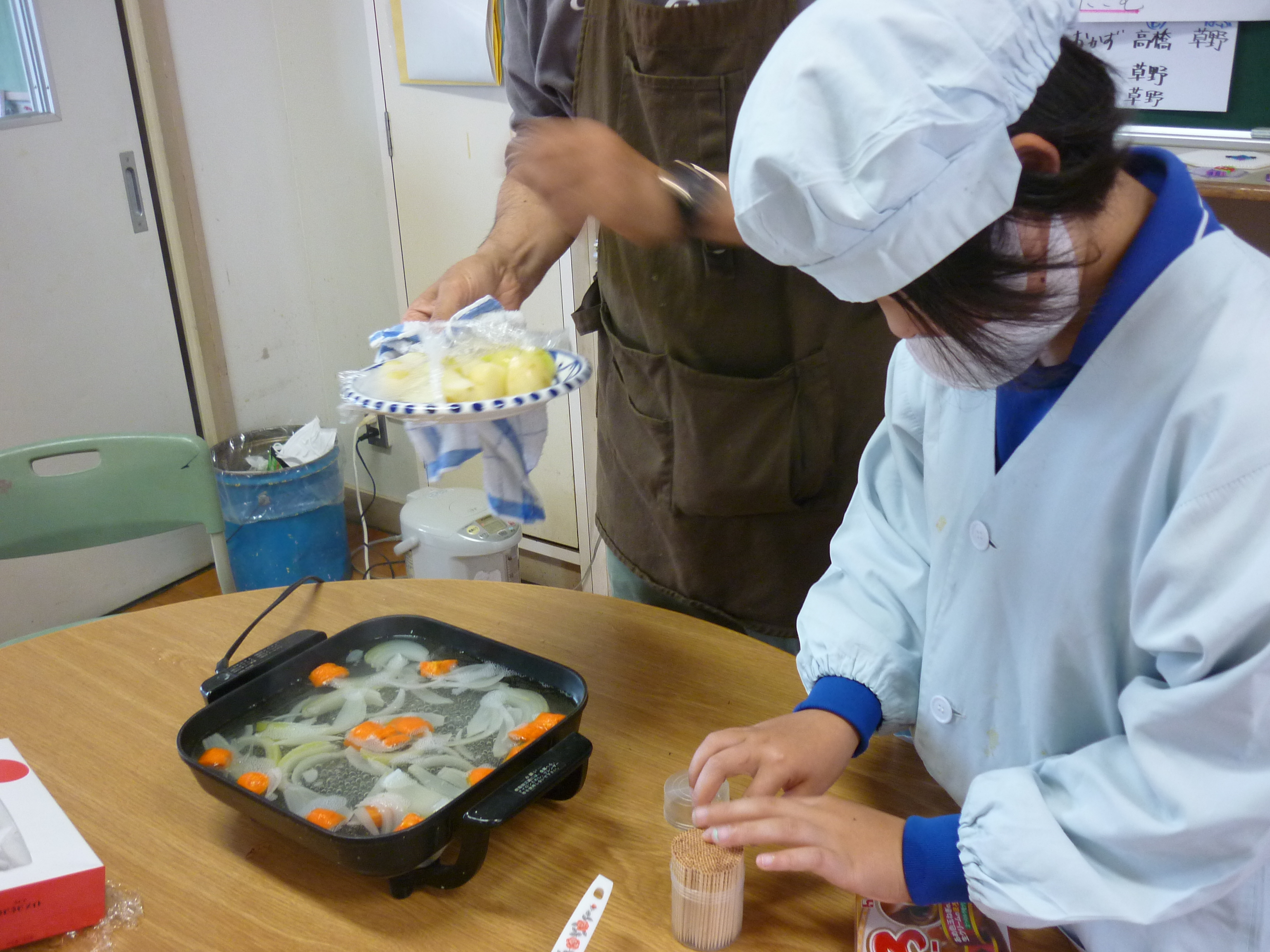 みなみ学級では、自分たちの畑で作ったジャガイモを先日収穫し、それを使ったカレーライス作りが行われました。ジャガイモの皮をむいたりにんじんを切ったり使った道具を洗ったり。大人の手を借りなくても自分でできることは自分ですることができました。