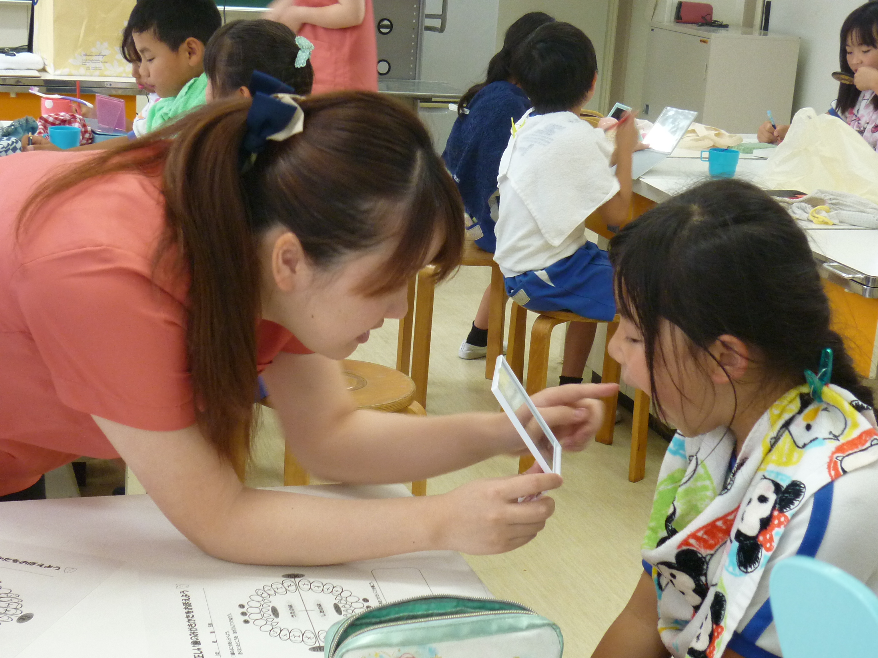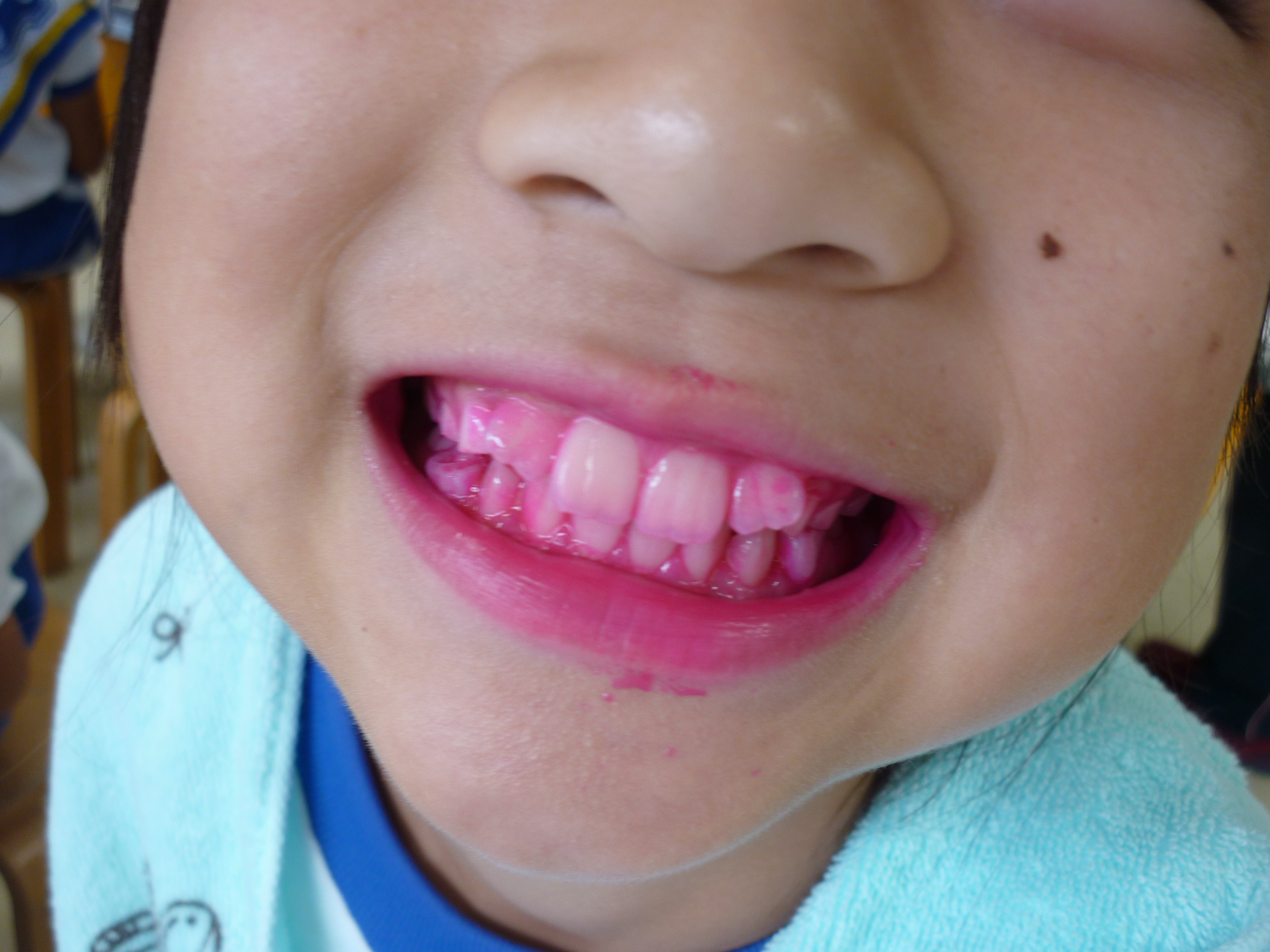 染め出し薬で歯の汚れているところを自分で確認し、その後、丁寧なブラッシング方法を教えていただきました。