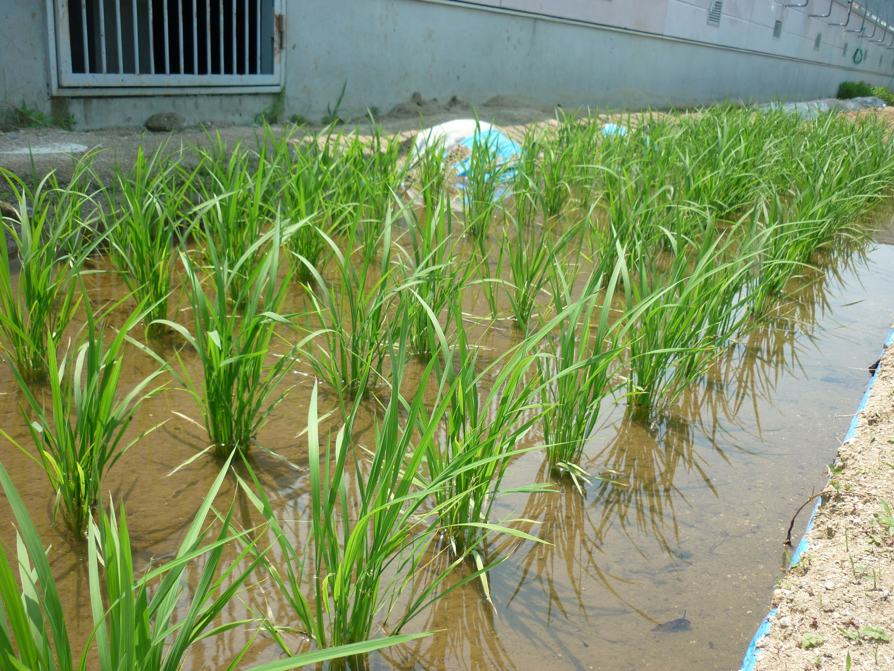 5年生が開墾した学校田。すっかり根を張り、稲は20cmくらいまで成長しました。