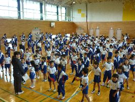 昨日の全校集会では運動会の歌「ゴーゴーゴー」の練習をしました。