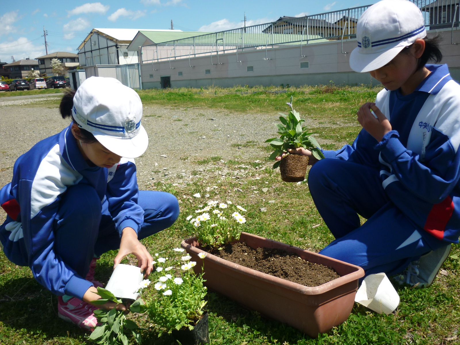 今日は歯科検診のあとプランターに花の苗を植え、
