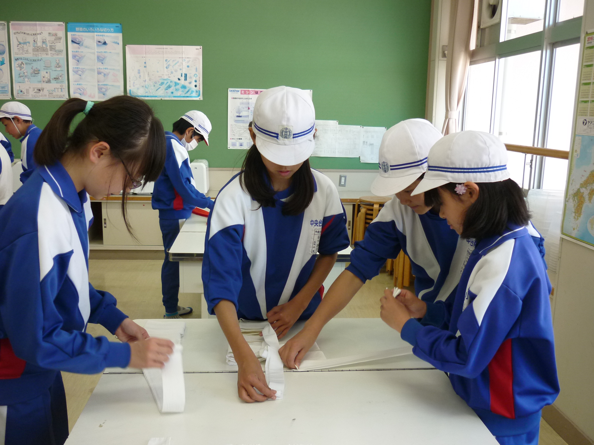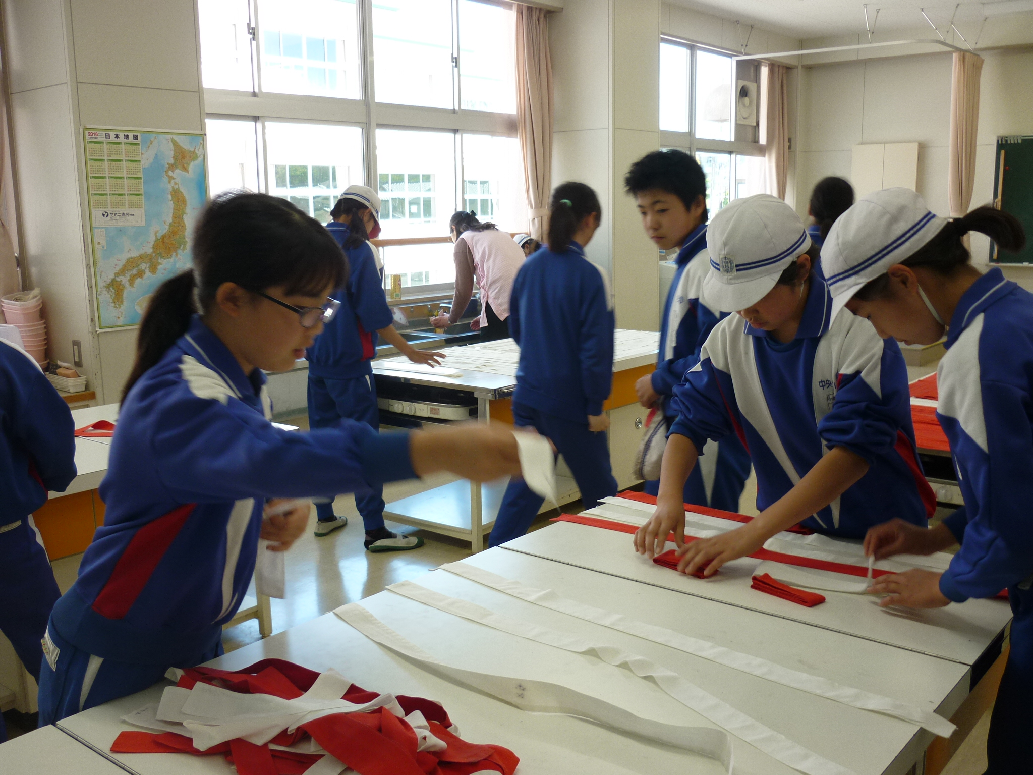 その後、運動会で全校生が使用する紅白のはちまきにアイロンかけをしてくれました。