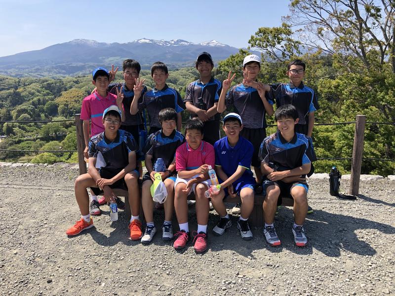 2019年5月7日 22時27分5月5日は、二本松市城山テニスコートで行われた県北研修大会に参加しました。県内だけでなく、宮城県や山形県からも参加し、50校以上の学校が団体戦を行いました。予選は、高瀬中、信夫中と対戦し、1勝1敗で予選リーグを抜けることはできませんでした。研修試合までの時間には、コート近くの城山跡に登り、気分をリフレッシュしました。研修試合は終了時間まで行い、強豪チームとの対戦で課題を見つけることができました。朝早くからの送迎と応援に保護者の方々にはお世話になりました。暑い中連日の大会で、選手たちはすっかり日に焼けました。
