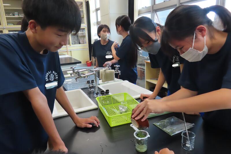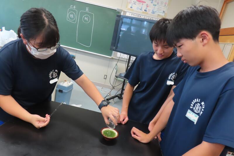 2024年9月13日 21時05分3年生の理科は、どのクラスも2時間にわたって「ブロッコリーのDNAを取り出そう」という実験に取り組んでいます。2時間目の今日は、まず精製水、塩化ナトリウム、中性洗剤でDNA抽出液をつくりました。