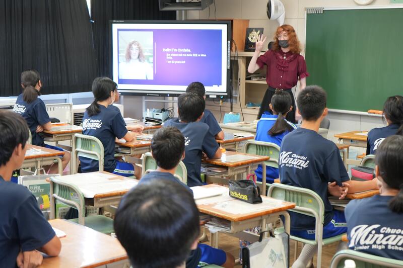2024年9月24日 22時50分 8月から新しいALTの先生が南中の英語の授業を担当していますが、アレックス先生に続いて コーデリア先生も授業を行いました。今回は初授業となった2年2組での活動の様子をご紹介します。