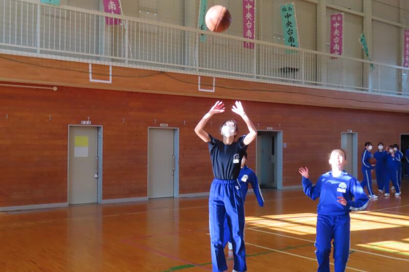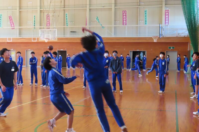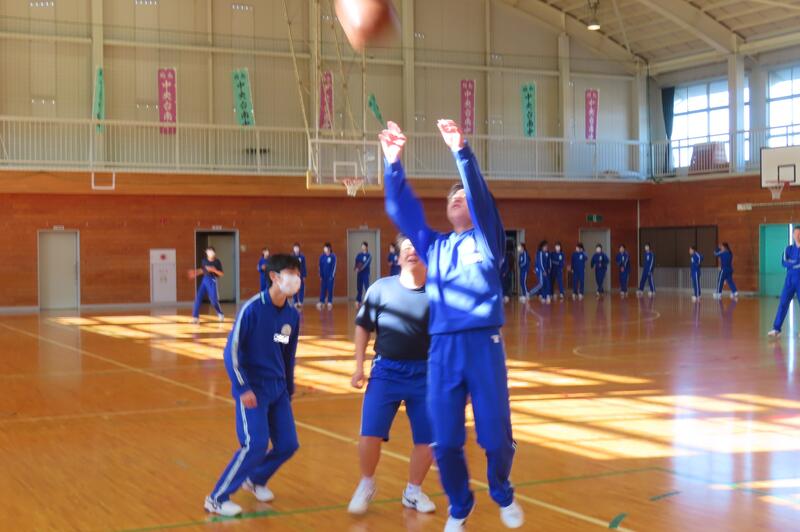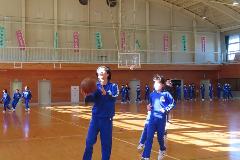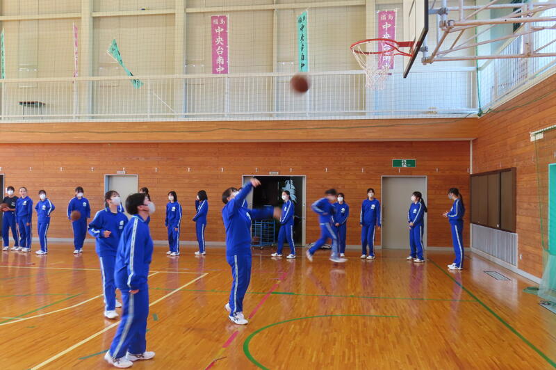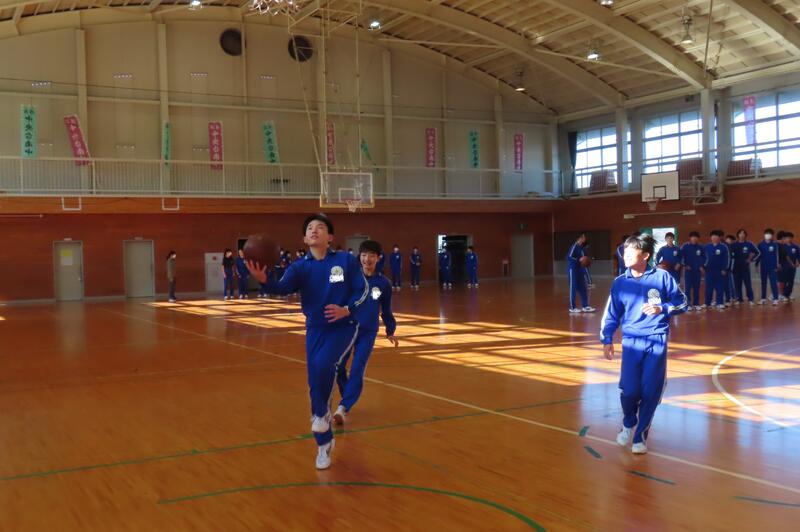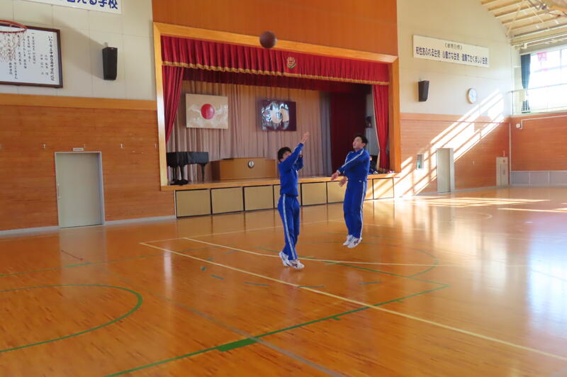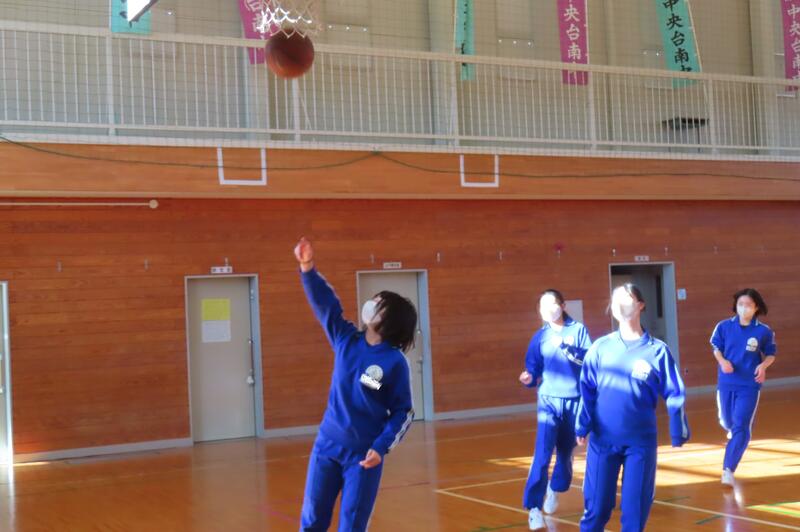 2024年12月20日 16時45分昨日、3年生は車いすバスケットボールの貴重な体験をしましたが、保健体育の授業もバスケットボールの学習が進んでいます。3年1組・2組は、基本的なパスやシュートの後、3人一組でシュート、リバウンドからの攻撃、すばやい防御への切り替えなどを意識した練習をしました。技能の優劣に関係なく、男女ともに意欲的に活動する姿が印象的でした。 車いすバスケでは苦戦していたバスケットボール部のみんなも生き生きと活動していました。