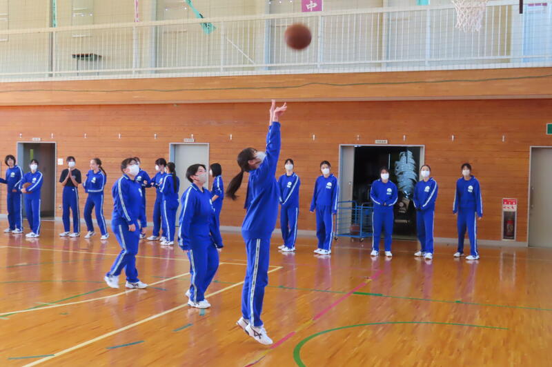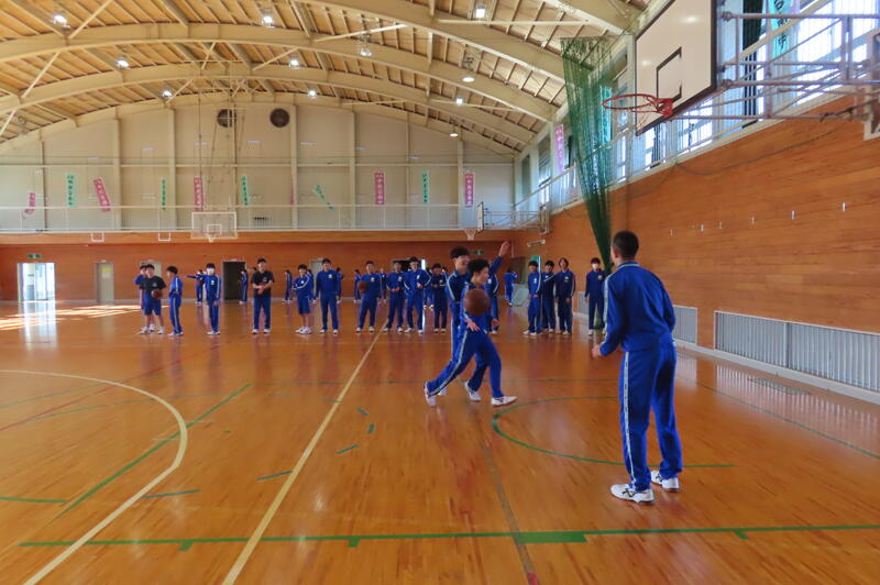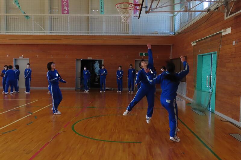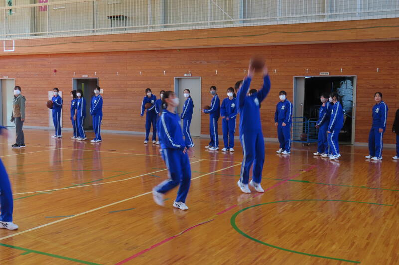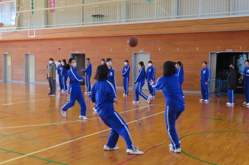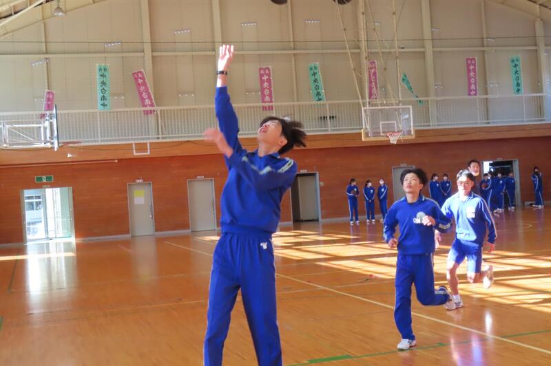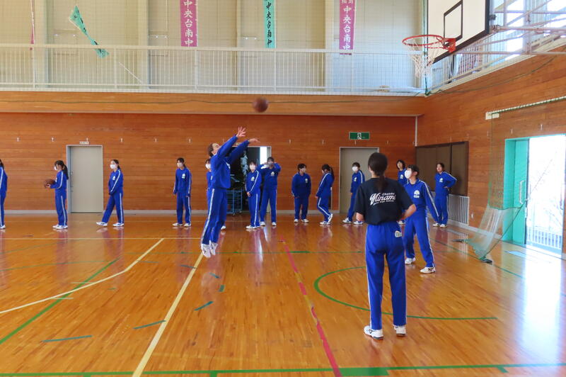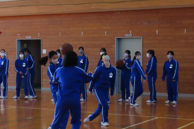 2024年12月20日 16時45分昨日、3年生は車いすバスケットボールの貴重な体験をしましたが、保健体育の授業もバスケットボールの学習が進んでいます。3年1組・2組は、基本的なパスやシュートの後、3人一組でシュート、リバウンドからの攻撃、すばやい防御への切り替えなどを意識した練習をしました。技能の優劣に関係なく、男女ともに意欲的に活動する姿が印象的でした。 車いすバスケでは苦戦していたバスケットボール部のみんなも生き生きと活動していました。