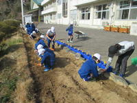 2020年12月21日 12時27分2年生が職員室前の花壇にチューリップの球根を植えました。来年の春にはどんな色のチューリップが咲くのかとても楽しみですね。