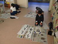 2020年12月22日 09時55分3年生の書写の授業では、書きぞめの練習をしていました。一人一人力強く「うし年」と書いていました。江名小HPから書きぞめの練習動画にアクセスできますので、ご活用ください。