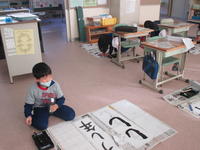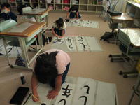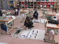 3年生の書写の授業では、書きぞめの練習をしていました。一人一人力強く「うし年」と書いていました。江名小HPから書きぞめの練習動画にアクセスできますので、ご活用ください。