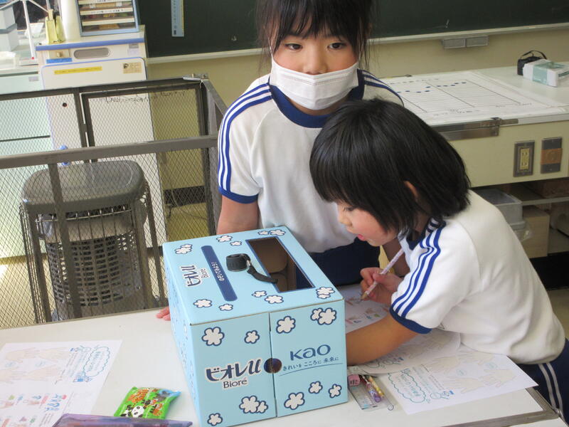 さかのぼること10日前、校長室に6年生が来室しました。「校長先生、ご相談が」とのことでしたので、話を伺いました。相談の内容は「自分たちの母校である江名小学校をよりよい学校にしたい。そのために、2つのことを実現させたい。」とのことでした。私としては話を聞き、「誰がやるのか」「いつやるのか」「材料はあるのか」「全校生に協力してもらうにはどうするのか」などいくつかの質問をしました。6年生はその場で話し合って回答したり、一度退室して調べ、再度来室したりと粘り強く活動し、次の2つを実現させました。