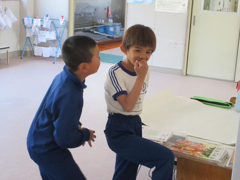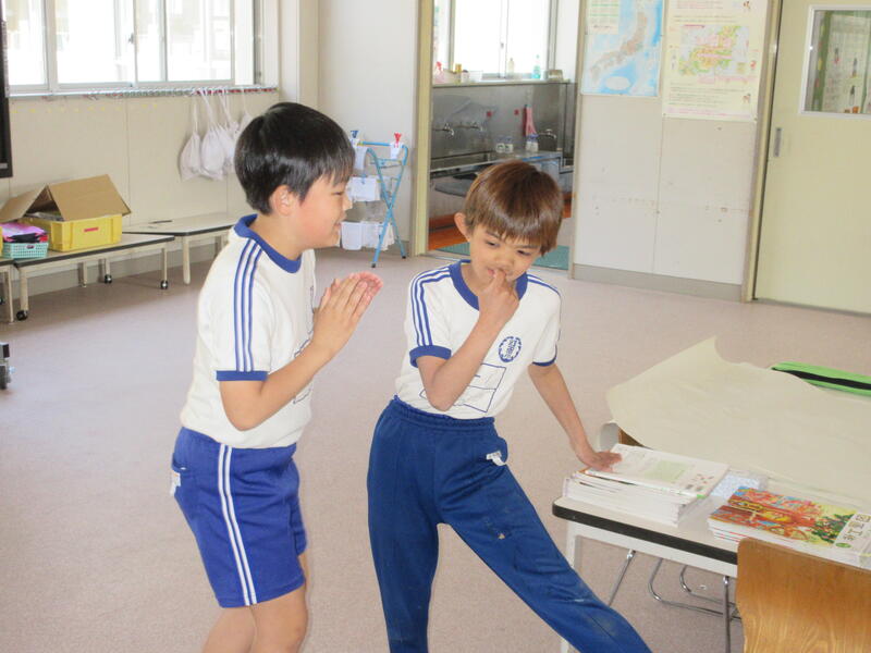3年生は外国語活動です。できる限り英語でヒントを出して、それを当てるクイズを行っていました。知っている英単語の数はまだ少ないですが、頑張って英語でヒントを出していました。