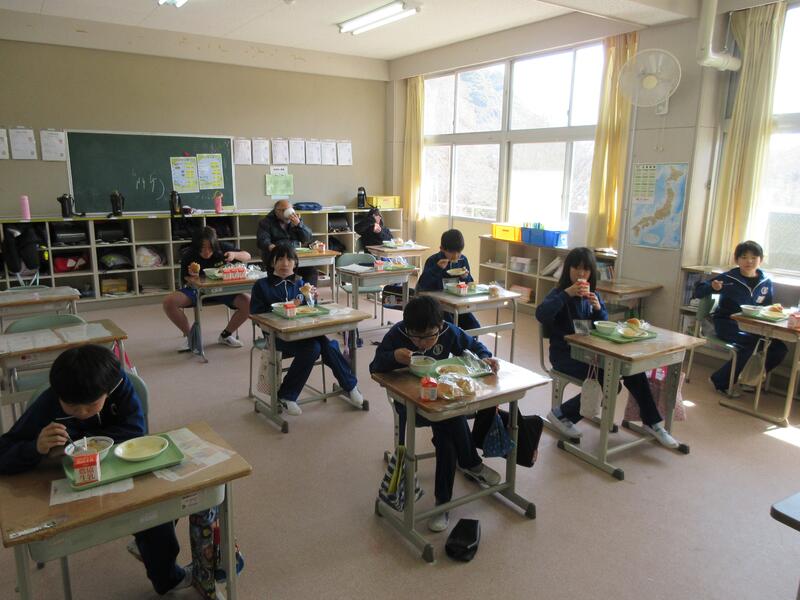 4年生は給食です。お休みの人が多くて、ちょっと寂しい給食となっていました。しかし、フードロスは避けたいと、食べられる人はどんどんおかわりしていました。若いって素晴らしいね。無理せず食べて、大きくなってね