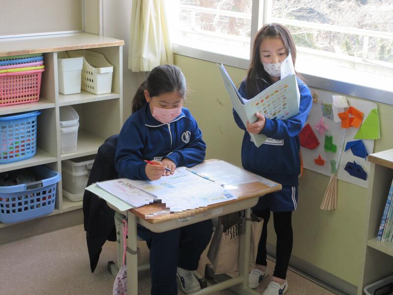 明日は修・卒業式。学校で学習したり運動したりするのは、実質、本日が最終日となります。そのような中、1年生は朝から学力タイムに取り組んでいました。先生方に教えていただくだけでなく、友達同士で互いに学び合う姿もすっかり板につきましたね