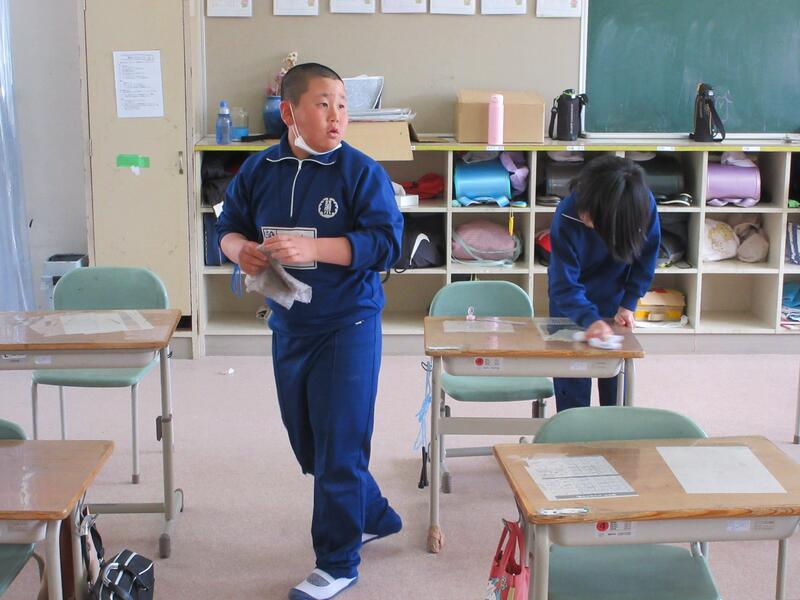 4年生はお世話になった教室の清掃。 感謝の心を持って、きれいにしていました。
