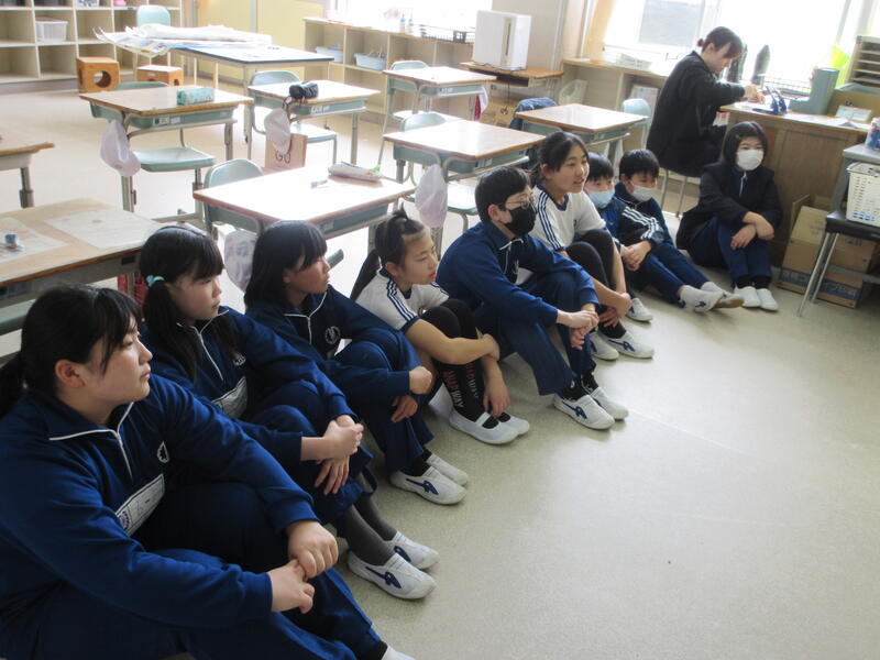 こうして9人で並んで読み聞かせを聞くのも、これが最後かもしれませんね。穏やかな空気の中、落ち着いて卒業式を迎えようとする6年生でした。