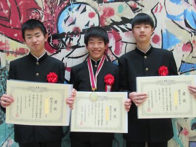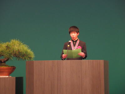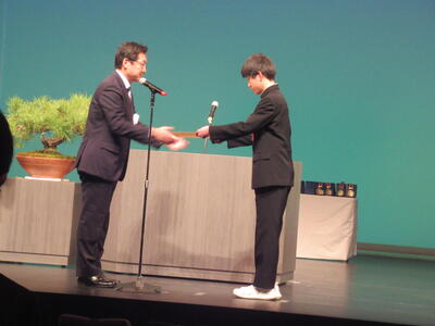 1月25日(土)に第58回いわき市交通安全市民大会がアリオス中劇場にて開催され、その中で交通安全作文コンクールの表彰が行われました。江名中からは金賞、銅賞、佳作にそれぞれ1名ずつ2年生が入賞し、代表して金賞を受賞した生徒が内田市長より賞状を受けとりました。その後、金賞を受賞した生徒による作文『ヘルメットの努力義務化と課題』の発表が行われ、会場からは盛大な拍手が送られました。これからも誰もが安心・安全に暮らしていけるよう、1人1人が交通事故防止に努めなくてはと考える場となりました。