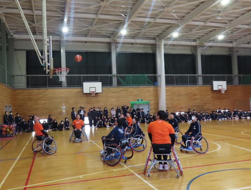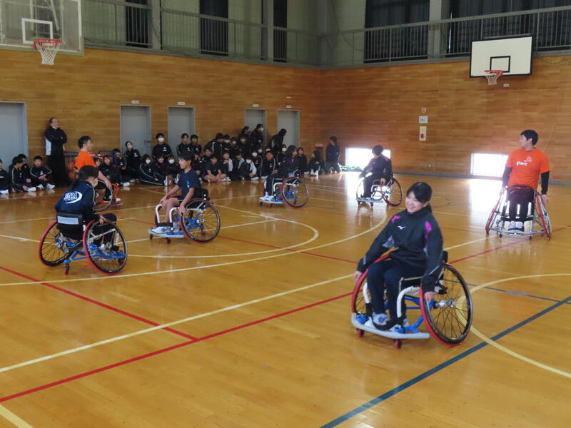 2024年12月23日 14時12分12月20日(金)、5・6校時に車いすバスケットボール体験会が行われました。車いすの仕組みや操作方法、車いすバスケについて楽しみながら学ぶことができました。また、身の回りには、多くのバリア(生活を送る中で支障となる障壁や障害)についても考えることができました。体験会の学びを生かし、様々なバリアに気づき、誰もが安心して生活できる社会を作っていけたら嬉しいです。
