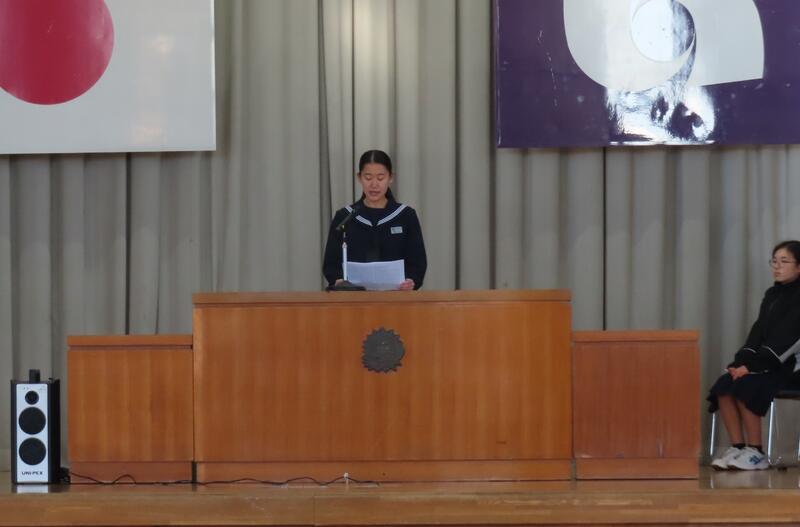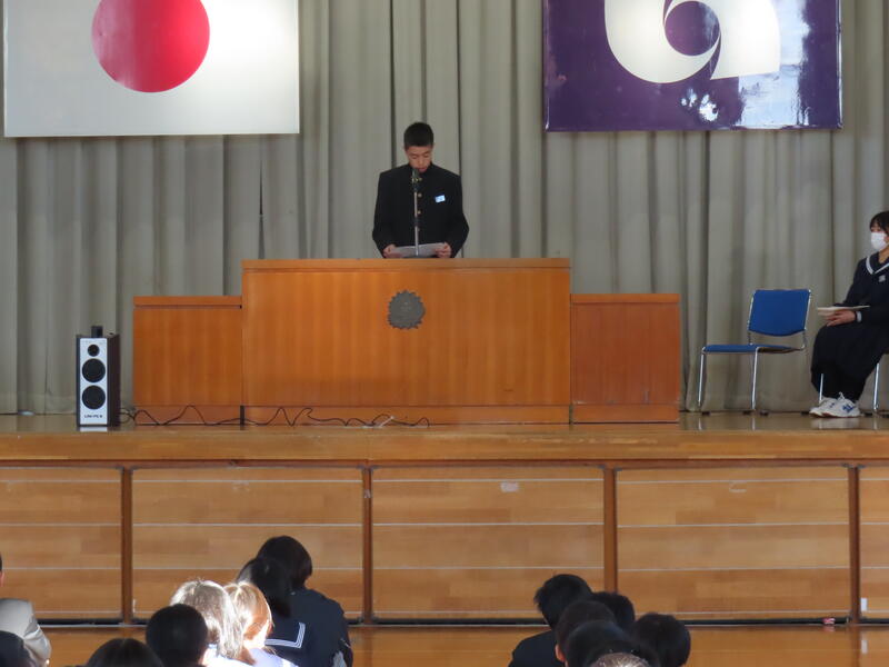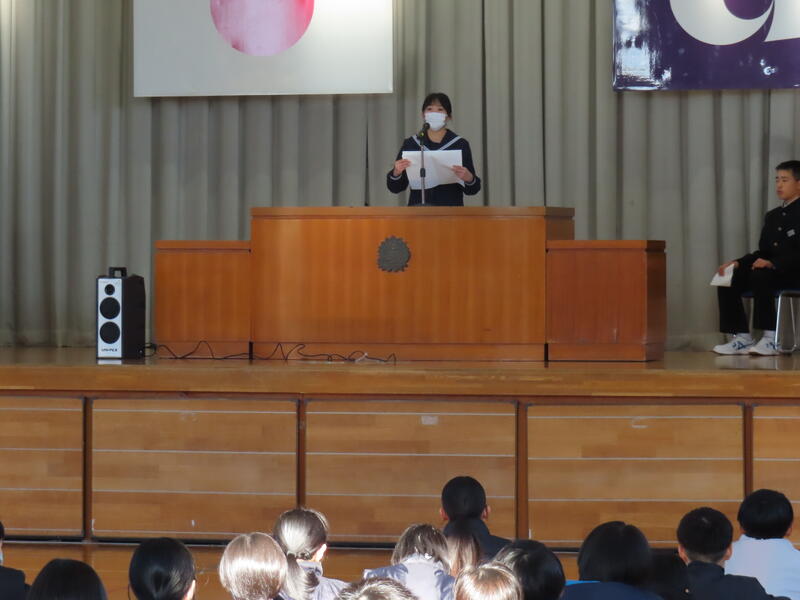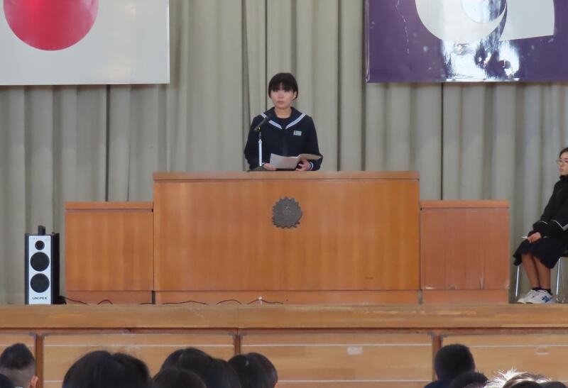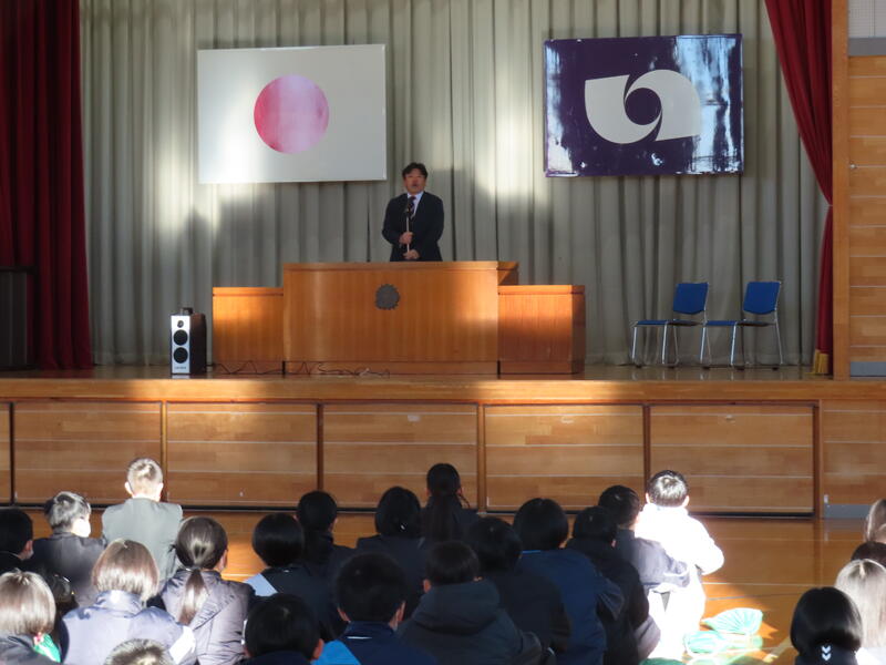 2024年12月23日 15時26分本日、2学期終業式が行われました。各学年の代表生徒が2学期の反省について発表しました。健康に気をつけ、充実した冬休みを送ってほしいと思います。3学期、元気な皆さんに会えることを楽しみにしています。