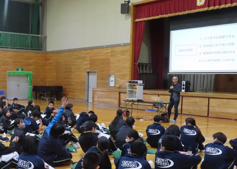 2024年12月17日 17時18分本日、6校時に情報モラル教室が行われました。自身のスマホの使用状況を確認しながら、SNSに潜む危険性について学びました。