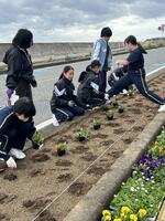 2024年11月16日 09時28分本日、11月16日に男女卓球部、吹奏楽部、文化部の生徒が地域の花植えボランティアに参加しました。地域の方々に教えていただきながら、楽しんで作業することができました。花いっぱいになるのが楽しみです。