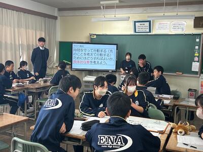 2024年11月22日 11時22分11/22(金)3校時 2年2組の学活の授業で、「時間を守って行動するにはどうすればよいか」の話し合いが行われました。解決策については、今後も検討が必要なようです。