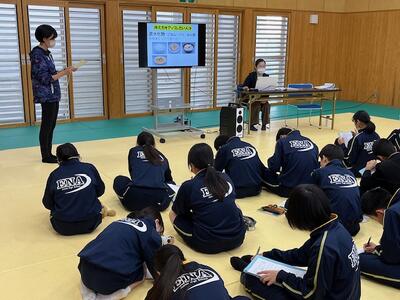 2年生は「スポーツと栄養」、3年生は「受験勉強と食事」というテーマで学びました。中学生に必要な栄養素や正しい食事の量など、さまざまなことを教えていただきした。今週は「朝食を見直そう週間」でもありましたので、ぜひこの機会に日頃の食生活を見直せるといいですね。