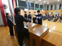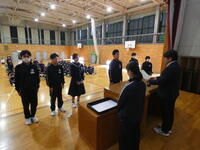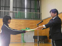 男子バレーボール部と絵手紙コンクールの入賞者が表彰されました。