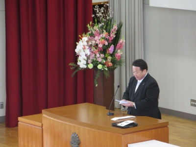 平成28年度末の人事異動により、10名の教職員が着任し、生徒たちの前であいさつをしました。