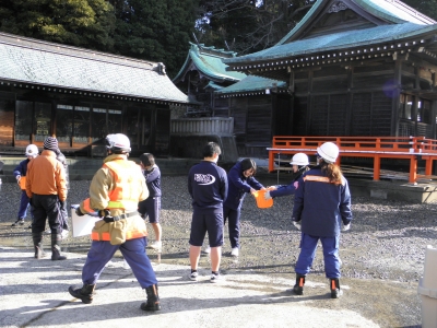 2017年1月22日 11時47分江名諏訪神社の総合防災訓練に江名中生も協力しました。