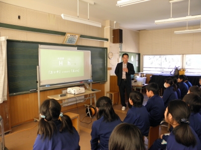 2017年1月12日 11時12分英語科の畑中先生が永崎小学校で、英語の授業を行いました。
