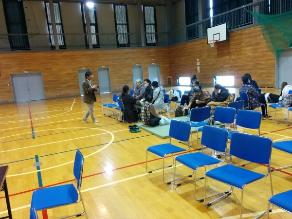2016年11月22日 09時55分本日の津波警報で江名中学校体育館が避難所となっています。