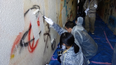今回は3Yジュニア推進委員と環境整備委員会の3年生14名が、小名浜高校、いわき海星高校の生徒会役員と一緒に学校近くの地下道の清掃活動に参加しました。