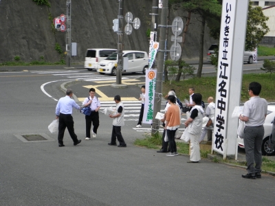 2016年7月4日 15時59分保護司会の皆さんが朝早くから、社会を明るくする運動の啓蒙と朝のあいさつ運動を行いました。
