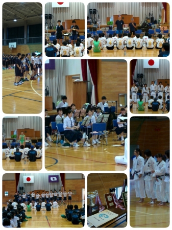 男子バレー、卓球、柔道、水泳など県大会ヘ出場する生徒の壮行会が行われました。