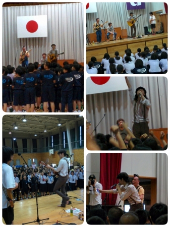 壮行会のあと「ひとりぼっち秀吉バンド」による応援コンサートで選手と生徒がひとつになって盛り上がりました。
