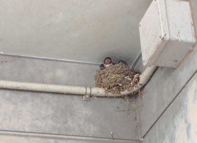 2016年6月27日 17時01分体育館の軒下にツバメが子育てを始めました。