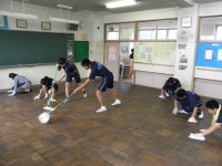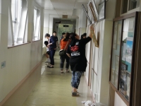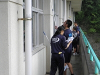 校舎の窓拭き等、美化作業に親子で汗を流しました。