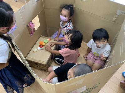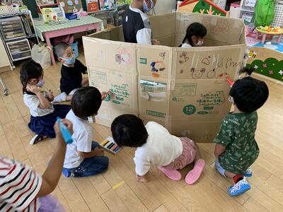 「おうちの模様をかきたい」、「カーテンつけたい」とイメージいっぱいな子ども達です。