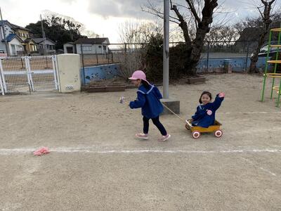 車ごっこ楽しいよ順番を守ったり役割を交代しながら楽しんでいます