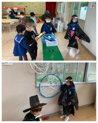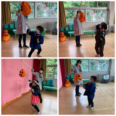 室内遊びでは、「そらぐみさんのやってたハロウィンのお面が欲しい!」と、早速遊びに取り入れようとする姿が見られました