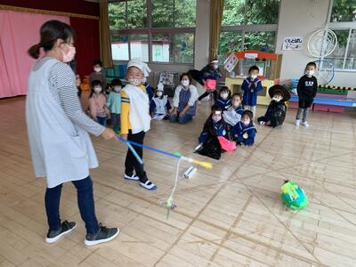 アザラシグループでは、数人で割れてお菓子が出てきました