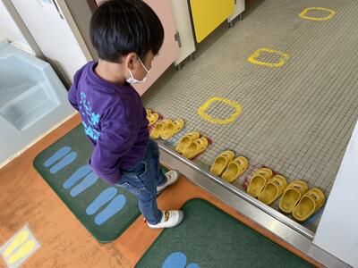 ご飯の前の排泄、手洗いでは、きちんとスリッパをそろえる3歳児!