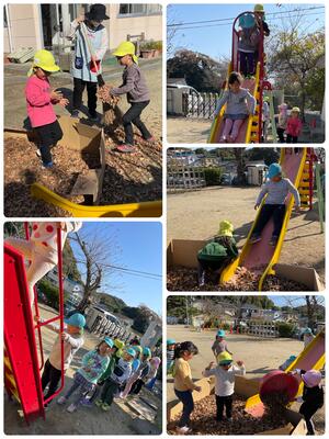 落ち葉ゾーンでは、何やら協力して