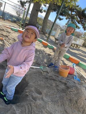 砂場から楽しい笑い声が