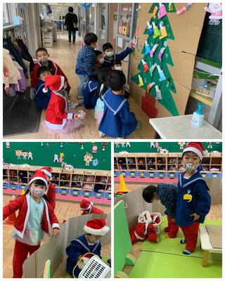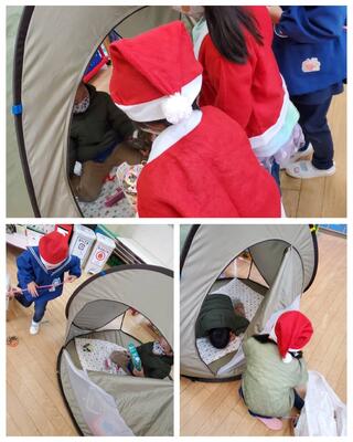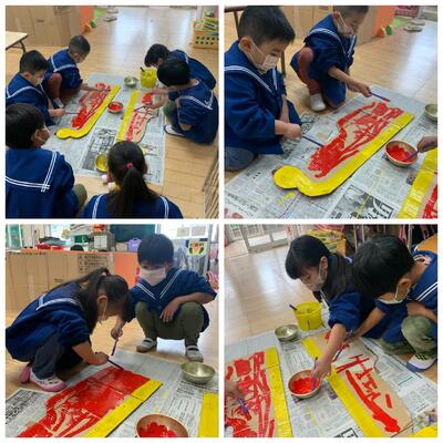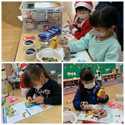 サンタのソリが欲しいなぁ〜との事で、早速朝から絵の具でソリ作り