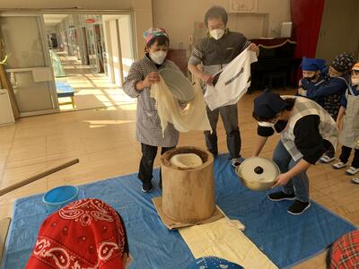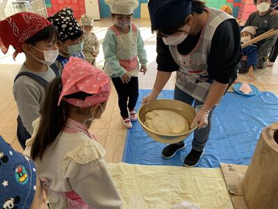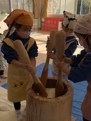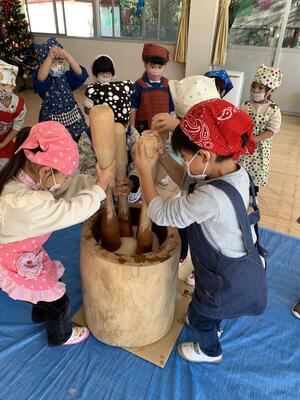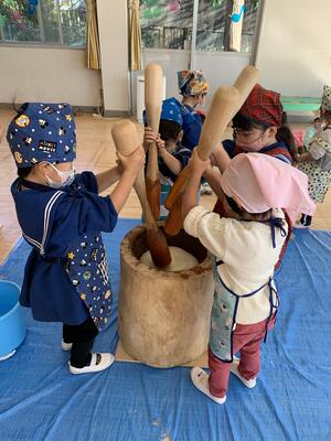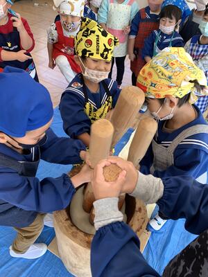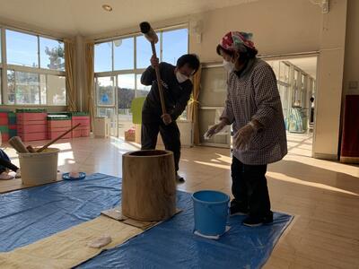 日本古来の伝統文化を伝えるため、臼と杵を使ってもちつきの体験をすることを目的に行いました