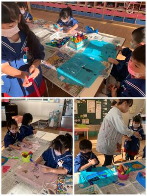 登園して、早速凧作りを行いました!