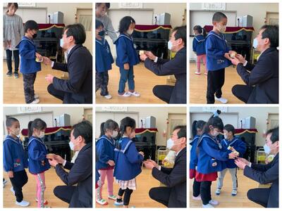 最後に、園長先生から、こまのお年玉をもらいました。