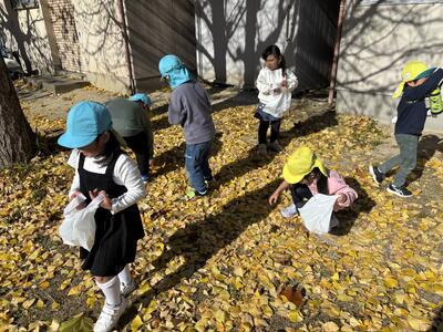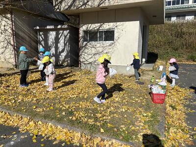 トレーニングの後は、イチョウの葉っぱ集め